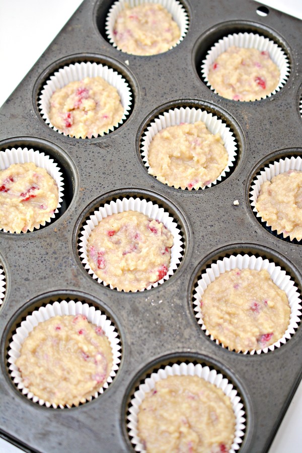 Bake the muffins for 20-25 minutes until lightly browned and cooked all of the way through.