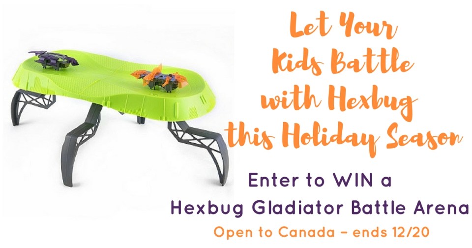 ONE lucky CANADIAN winner has that chance to WIN a HEXBUG Gladiators Battling Robots Arena – giveaway ends 12/20 at 11:59 pm EST must be 18+ to enter.
