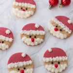 Press the semi-circles onto the cookies – they will act as Santa’s hat.