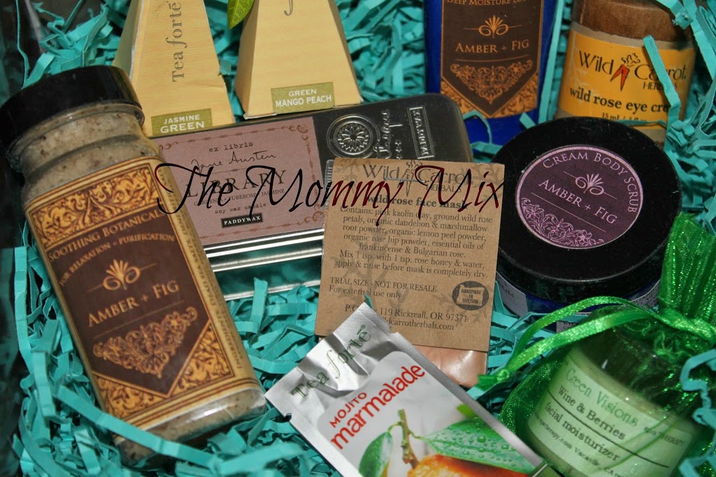 I received the Limited Edition Signature Box filled with products that smelled wonderful and I could feel safe using from Buffalo Gal Organics, Wild Carrot Herbals, TeaForte and Paddywax.