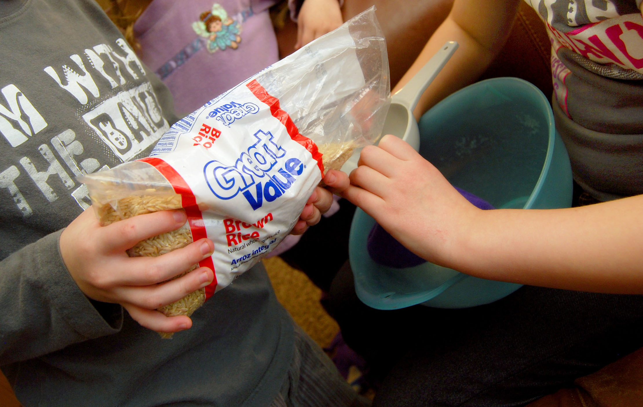 4. Using a funnel, fill your hand warmers with uncooked rice.