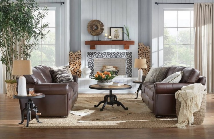 Home Decorators Collection Alwin Chocolate Italian Leather Sofa | Cowhide Light Brindle Indoor Area Rug | Home Decorators Collection Industrial Natural Reclaimed Extendable Coffee Table | Home Decorators Collection Natural Adjustable End Table | Pepita Ivory Acrylic Throw | Tomlinson White Indoor Table Lamp | And more…