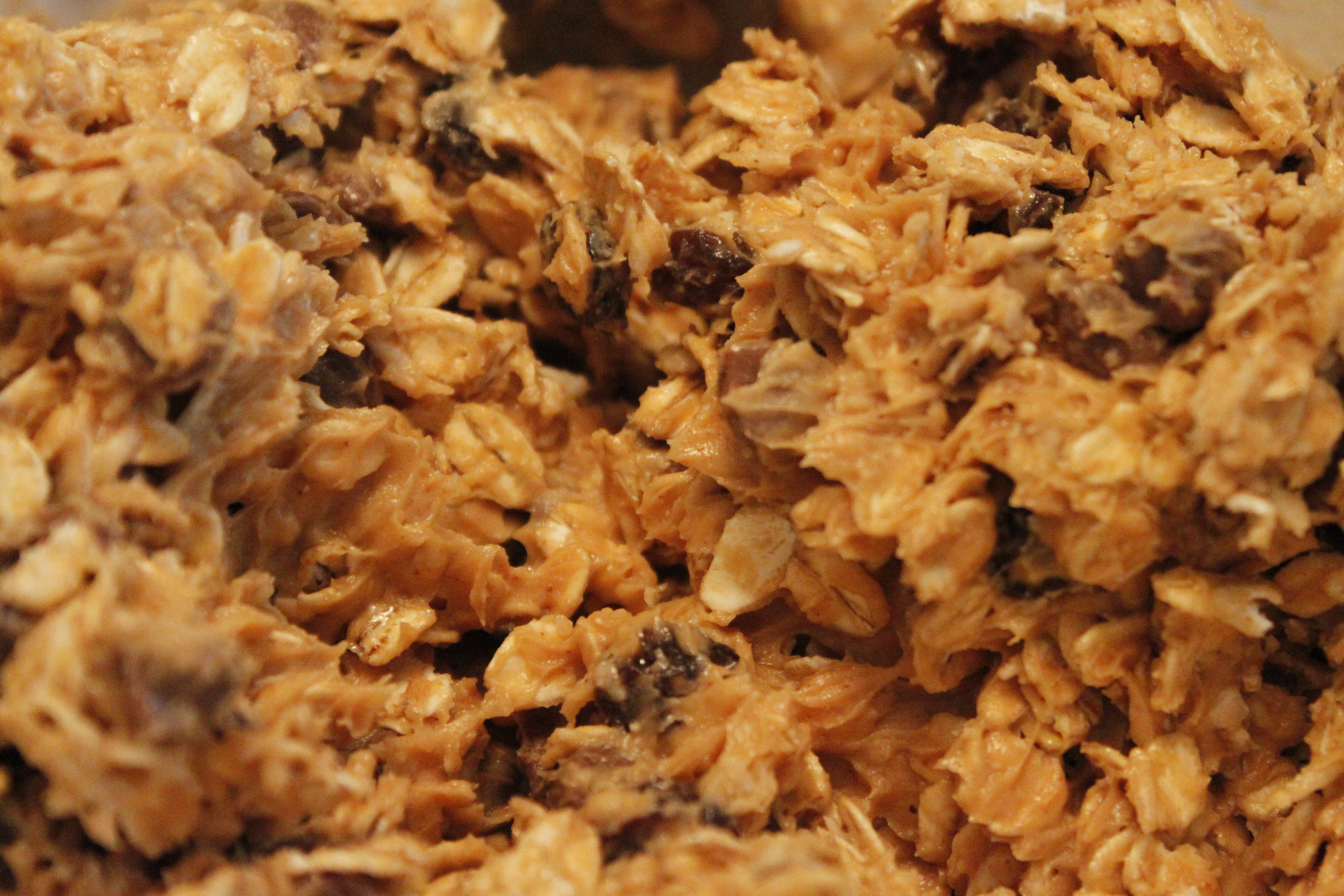 The Get-up-and-Go Peanut Butter Snack Bites are loaded with peanut butter, large flaked oats, honey, chocolate chips, raisins and coconut. Ingredients