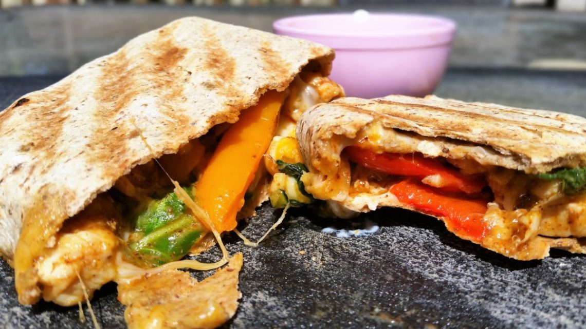 In the end, his mistake was a blessing in disguise because there are no words to explain just how delicious the grilled chicken fajita flatbread wraps were dipped in sour cream. Of course, you can use salsa or guacamole if you’d like. Heck, even all three!