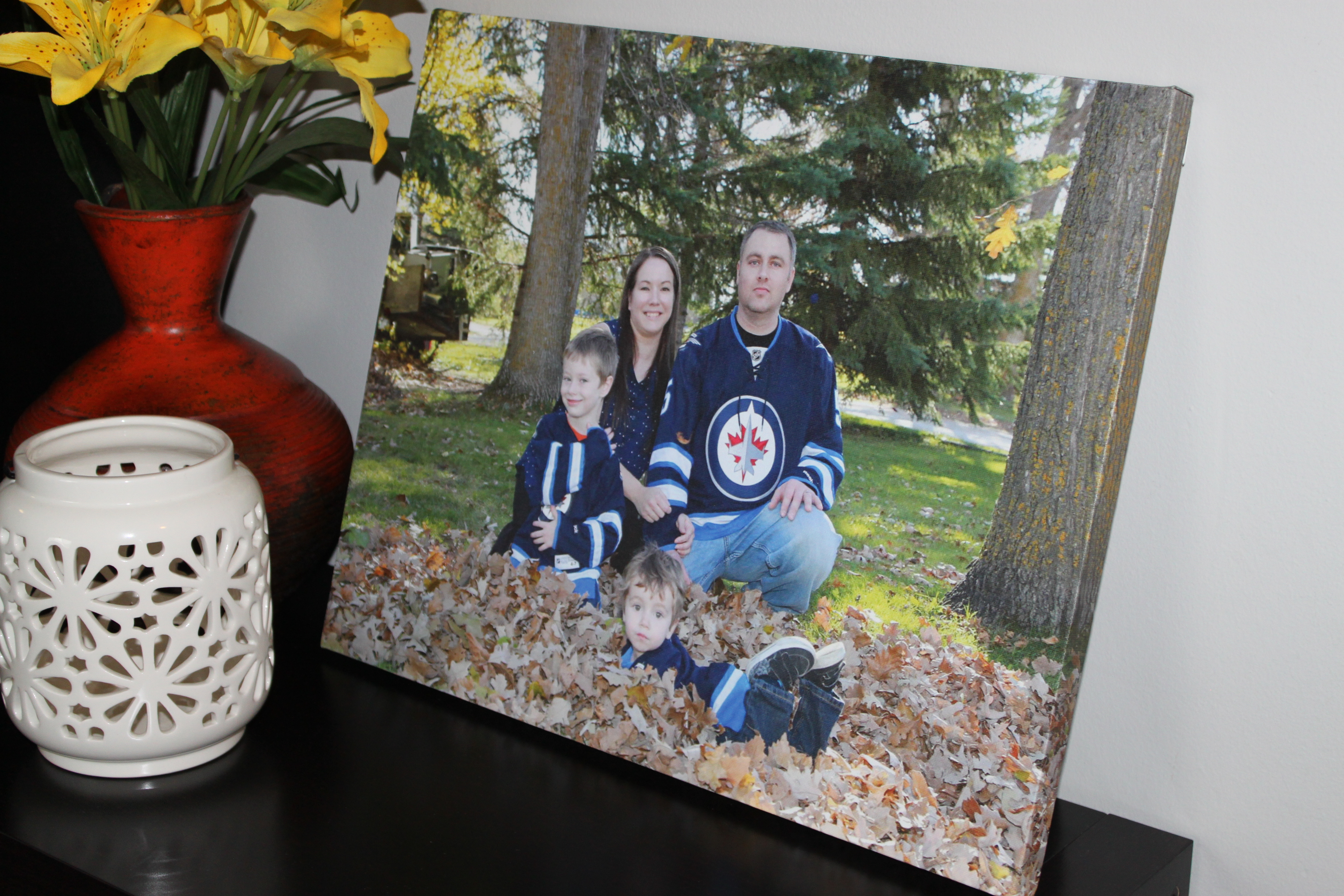 Rather than opting for another canvas print from our wedding I decided to order a 16×20 custom canvas print with an image wrap of my favourite family photo we had taken in the fall just over a year ago. I just love the neutral colours of fall; green, brown, orange and yellow…they’re all beautifully portrayed on our canvas. They do have the option to add a frame to your finished product which I opted out of because I love the natural look of the image wrap and this is a feature I always tell my clients about.