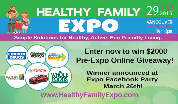 Winner must collect all prizes at the Healthy Family Expo live event at the Vancouver Convention Centre on Sunday, March 29th, 2015, open from 10:00 am to 5:0