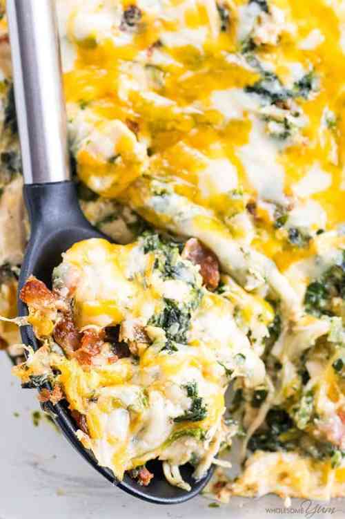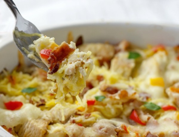 15. Bacon Chicken Alfredo Squash Noodle Bake from Beauty and the Foodie