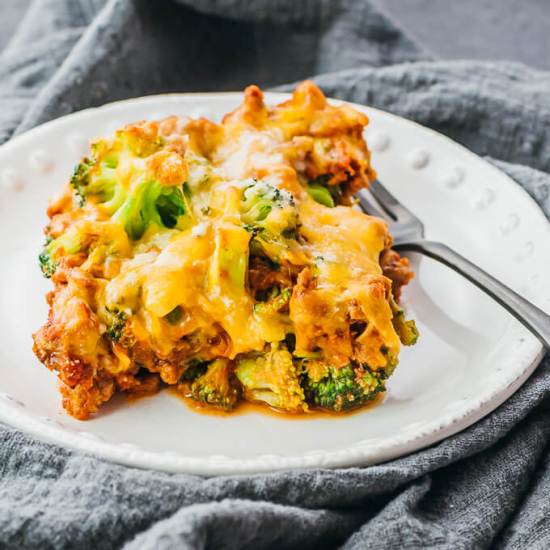 4. Keto Casserole with Ground Beef & Broccoli from Savory Tooth