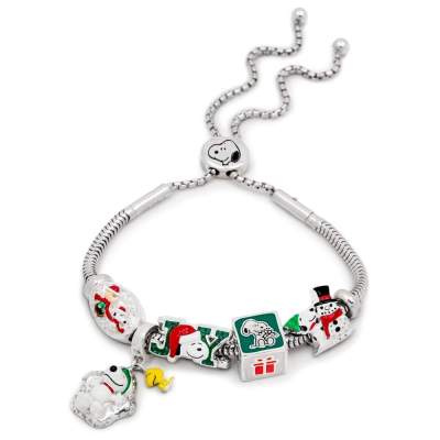 This timeless piece is limited to only 500 of it’s kind, it comes in a beautiful keepsake box featuring a unique and adjustable sterling silver bolo bracelet engraved with everyone’s favourite Peanut character – a smiling Snoopy. This set includes five winter-fun themed Peanuts© by Persona charms adorned with hand-painted enamel and Austrian crystals that perfectly capture the holiday spirit.