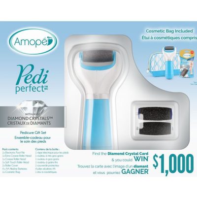 Show her you appreciate everything she does every day of the year with The Amopé Pedi Perfect Electronic Foot File with Diamond Crystals Gift Set from Walmart, Shoppers Drug Mart & Amazon.