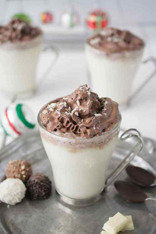 White Hot Chocolate with Dark Chocolate Whipped Cream