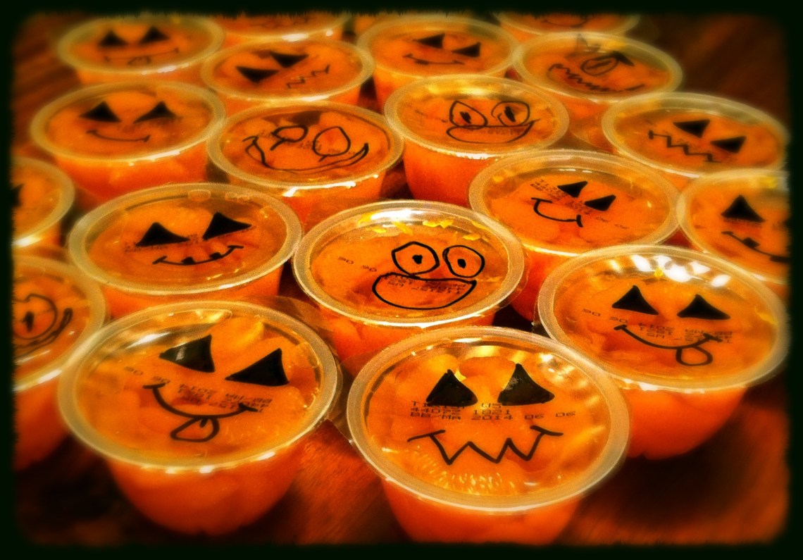 I really like this idea and a cute way to not have their overfill of sweets today. They really look like mini pumpkins in a cup. I hope they were well received and he looks like he had fun drawing his wide-eyed jack o lanterns 🙂