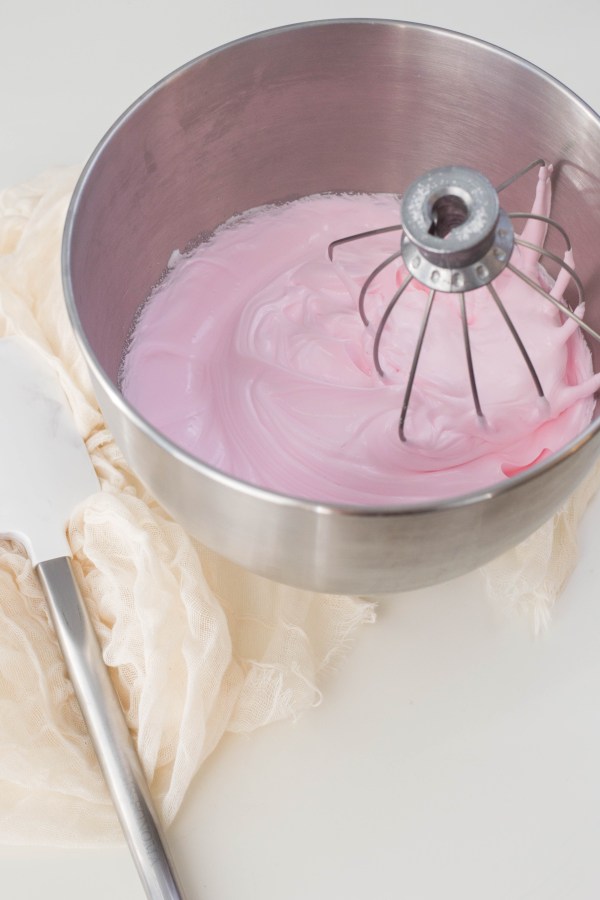 - Once your mixture is and forms stiff peaks, add one small drop of gel food coloring.