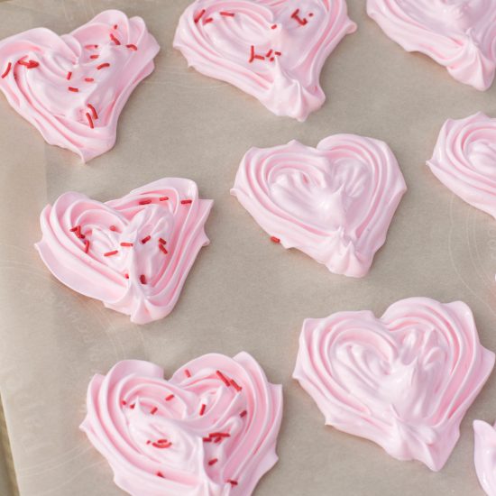 Valentine’s Day is full of recipes that sit heavy on the stomach; plates of pasta, seafood and of course, decadent desserts. Switching things up from the usual cheesecake, fudge and parfaits for light and airy meringue heart cookies can be a delightful change.