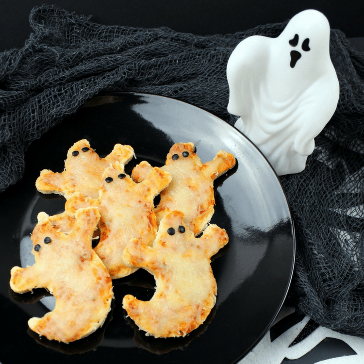 - Take out your mini ghost pizzas from the oven and serve immediately!