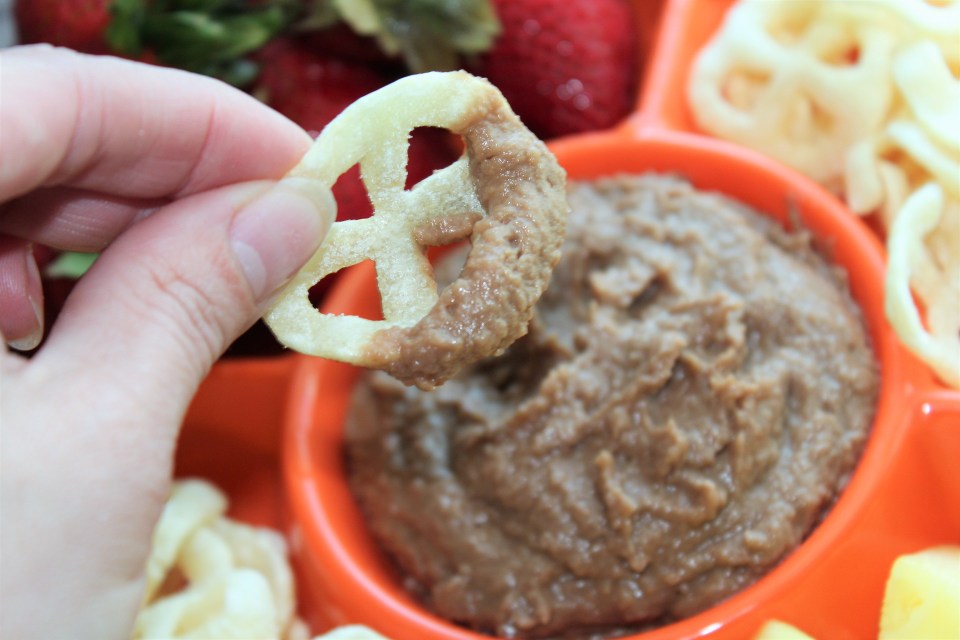 Prepare the dip ahead of time and keep in your refrigerator for a healthier option when it comes to your sweet tooth. It makes a great addition to a child’s lunch bag, movie night and the dessert table at any pot luck.