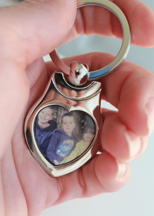 A keychain with a photo of the kids so hubby can have them with him. He is in AB right now and we are in NS and we wont see him again until July.