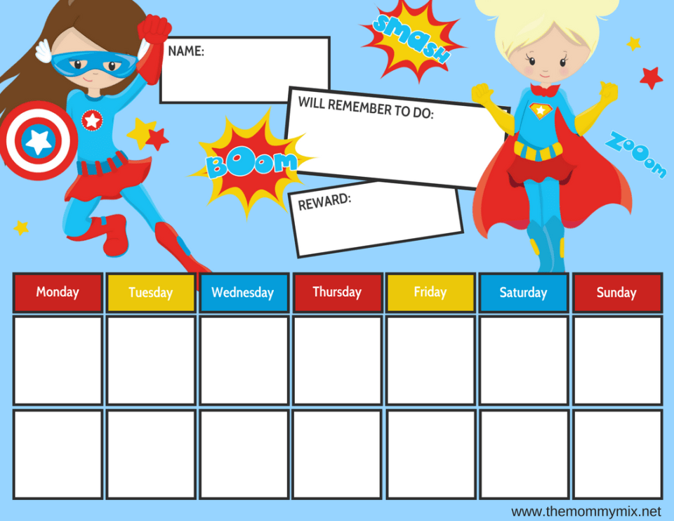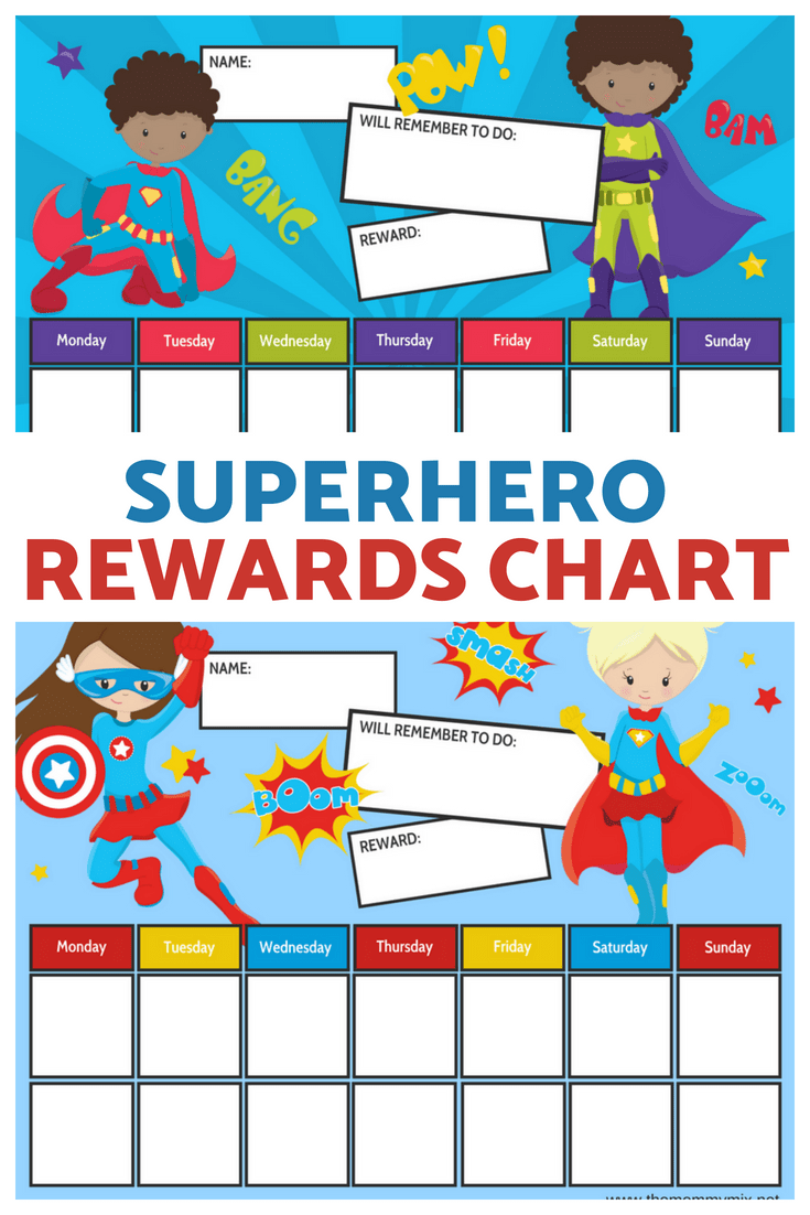 Most of all, let them have fun with their rewards chart – play a superhero anthem when they have all their spaces filled and tell them every chance you get that they are your little superhero for accomplishing something they set their minds to.