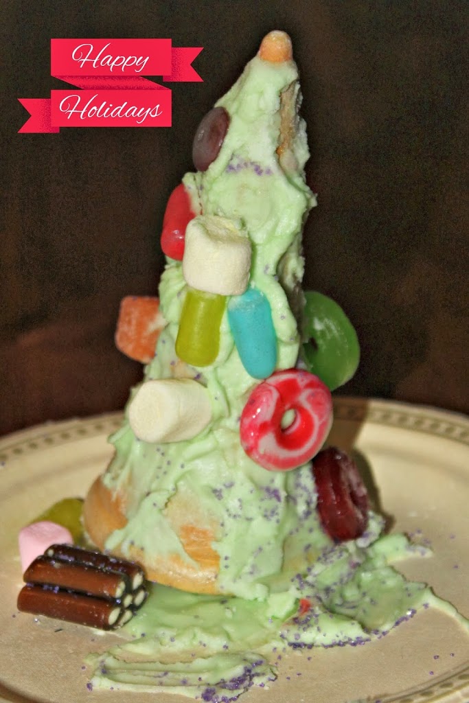 Now that the kids are on their Christmas breaks I thought that I would share this fun and yummy treat that my son made at school yesterday. All you need is: A paper plate - preferably white to look like snow Ice cream cones - the ones with the pointy bottoms not the flat ones Green icing - vanilla store bought is fine just had green food coloring Candy - whatever your little ones favorites…
