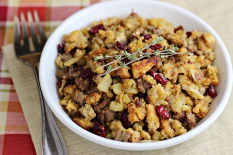 8. Cornbread Sausage Stuffing with Apples and Cranberries from Homecooking Memories