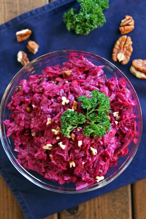 17. Creamy Russian Beet Salad from Leela Licious