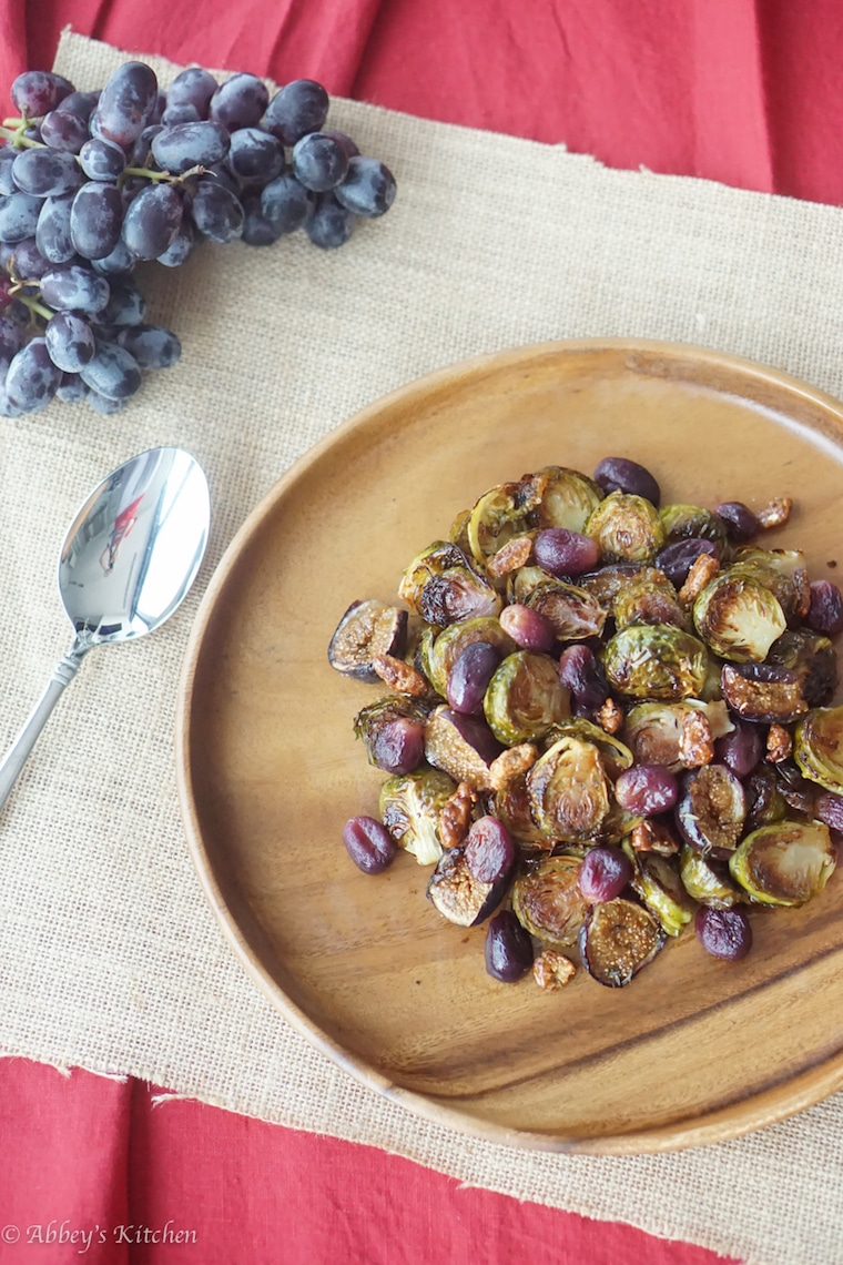 1. Balsamic Roasted Brussel Sprouts with Grapes & Figs from Abbey’s Kitchen