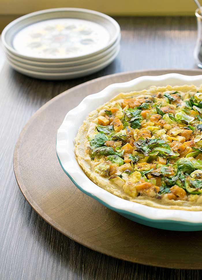 6. Mashed Potato Crusted Butternut Squash, Brussels Sprouts, and Tofu Pie from Healthy Slow Cooking