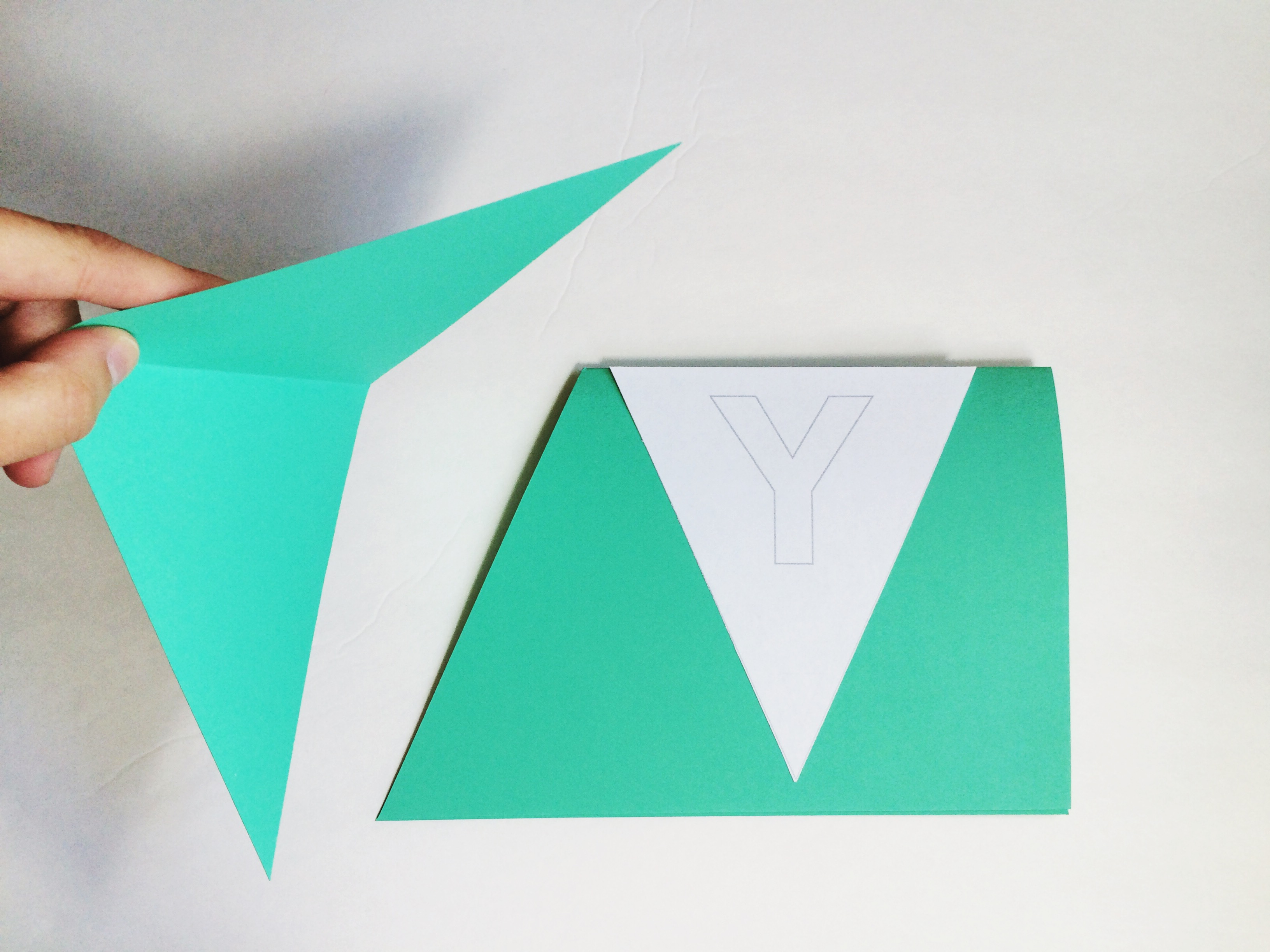 Now open up your folded triangle, and align your template on top of one side, and use an Exacto Knife (or scissors), to cut out the letter outline.